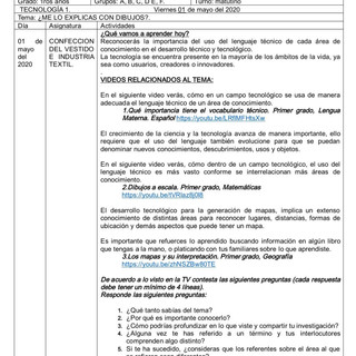 Taller.Confeccion del Vestido.1°. A,B,C,D,E,F. Profesora:Elba Barcenas.Actividadad tv. 1° de Mayo.est37encasa2 may 20200 Min. de lectura